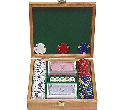 Trademark Poker 100 Pro Clay Casino Chips With Beautiful Solid Oak Case